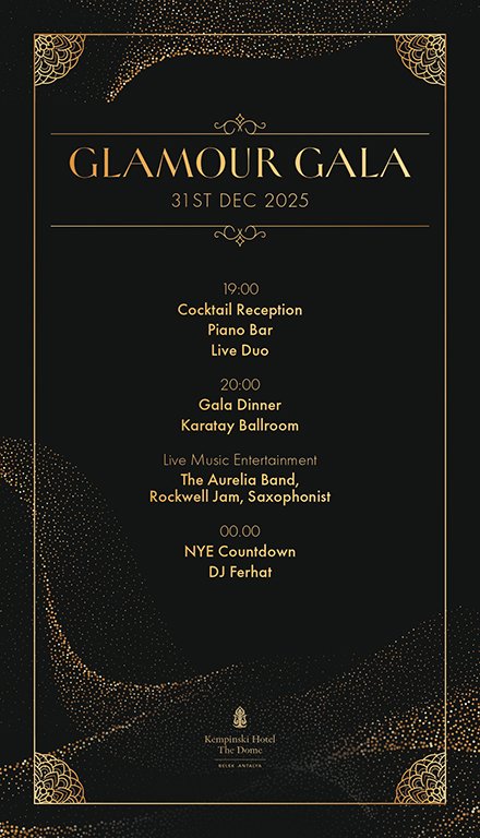 Belek’in zarif atmosferinde, Akdeniz’in büyüleyici dokusuyla bütünleşen Kempinski Hotel The Dome Belek, 2026 yılına görkemli bir gala gecesiyle merhaba demeye hazırlanıyor.