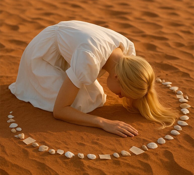Ayça Ceylan, Masaha Cycle 9 kapsamında geliştirdiği ‘The Sandland Oracle: Codes of the Ancient Future’ adlı interaktif yerleştirmesiyle çölün kadim belleğine, sembollerin şiirselliğiyle yaklaşıyor. Al-Dahna Çölü’nün hilal biçimli kum tepelerinden Diriyah’ın toprağa yazılı hafızasına, AlUla bölgesinde bulunan milyonlarca yıllık deniz kabuklarına uzanan çok katmanlı bu deneyim; sanatçının sezgisel araştırmalarının, bölgesel mitolojilerin ve doğa odaklı teknolojik araçların zarif bir sentezine dönüşüyor.
