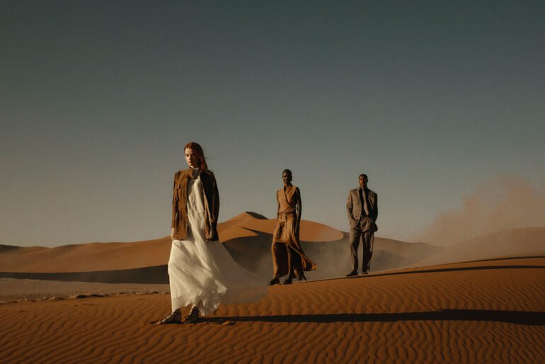 Brunello Cucinelli İlkbahar–Yaz 2026 Koleksiyonu, sıcak ve yoğun bir ışıkla yıkanan atmosferde, çölü anımsatan bir manzarayla bütünleşiyor. Toprak, markanın stilinin kopmaz biçimde bağlı olduğu kökeni ve sezona yön veren zengin renk paletini temsil ediyor. Ateş ise yaratıcı tutkuyu ve zanaatkâr dokunuşu simgeliyor; güzellik arayışını harekete geçirerek tasarımları yaşayan, enerjik formlara dönüştürüyor.