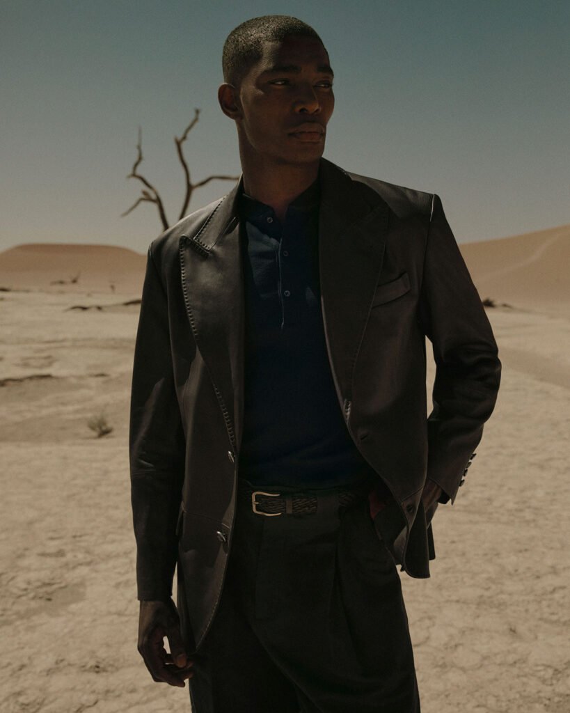 Erkek koleksiyonunda Ateş’in enerjisi; Coral Red gibi canlı tonlarla görünümün içine dinamik dokunuşlar katarken, toprak tonlu nötrler ve parlak beyazlarla dengeleniyor. Bu renk vurguları, kombinlere doğal biçimde entegre olarak güçlü ama rafine bir stil ifadesi yaratıyor. Silüetler, formel ve casual arasındaki sınırları belirsizleştirerek 90’ların başına ait sartoryal kodları çağdaş bir tavırla yeniden yorumluyor. Yeni tailor blazer, geleneksel modellere kıyasla daha uzun kesimi, belirgin omuz yapısı ve geniş yakasıyla öne çıkarken; pantolonlar uzatılmış oranları ve yumuşak hacimleriyle rahat bir sofistikasyon sunuyor. Yün, ipek ve ketenin zenginliği; panama örgü ve hafif kanvas gibi yazlık kumaşlarla akışkan ve rafine formlar yaratıyor. Doğal liflerin kalitesine, blazer ve dış giyimde kullanılan akışkan country süetin yumuşak dokusu eşlik ederek zahmetsiz bir şıklık sağlıyor.