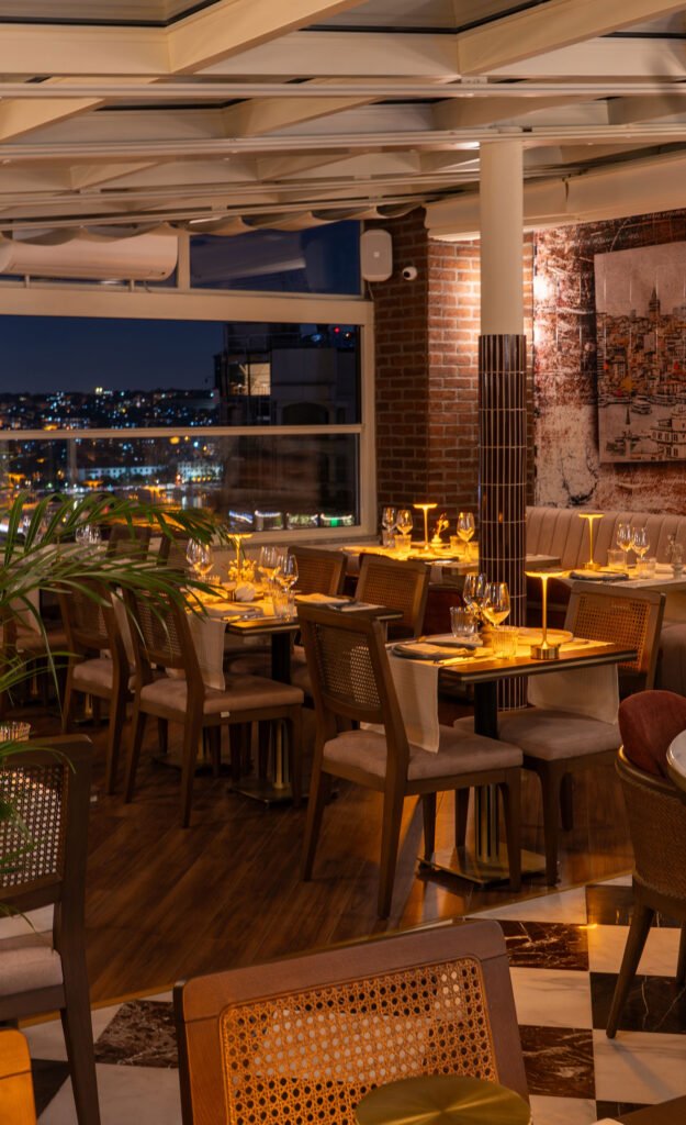 İstanbul’un kalbinde, kent siluetinin en ikonik görüntülerinden biri olan Galata Kulesine yalnızca birkaç adım mesafede konumlanan Manifest Roof, her akşam misafirlerini dünya mutfağı ile Akdeniz mutfağının özgün buluşmasına davet ediyor. Terasından Haliç ve tarihi yarımadanın panoramik manzarasını seyrederken, akşam güneşinin ufukta kayboluşunu izlemek; bu eşsiz adresin sunduğu büyülü atmosferin sadece başlangıcı… Manifest Roof’un ambiyansı, ferah tasarımı ve samimi servis ekibi, özellikle akşam yemekleri için ideal bir sahne hazırlıyor.
