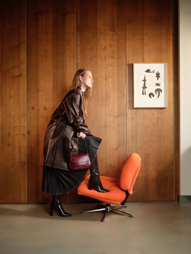 Koleksiyonda diz altı formlar, zarif topuklu modeller, modern geniş kalıplar ve günlük kullanıma uygun rahat alternatifler öne çıkıyor. Pürüzsüz deri yüzeyler, yumuşak süet dokular ve ışığı incelikle yansıtan kaplamalar; her tasarıma sade ama etkili bir karakter kazandırıyor.