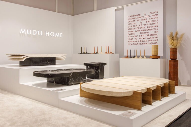 Mudo Concept ve Mudo Home, 25-27 Eylül tarihleri arasında ikincisi düzenlenen Furnishings & Design Istanbul (FDI) Fuarı’nda endüstriyel tasarımcılar Adem Önalan ve Berk İlhan tarafından Mudo Concept ve Mudo Home için özel olarak tasarlanan ‘Diyalog’ adlı özgün bir koleksiyon ile yer aldı. Doğal taşın zamansız estetiğini çağdaş formlarla buluşturan tasarımlar, fuarın ardından seçili Mudo Concept ve Mudo Home mağazalarında satışa sunulacak.
