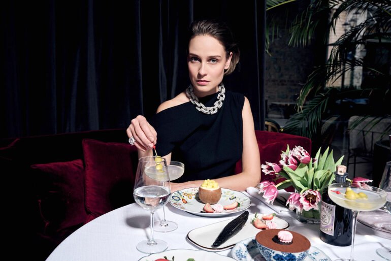 Cruise 2026 koleksiyon çekimlerinde gastronomi, bu estetik evrenin doğal bir uzantısı olarak ele alınıyor. Tabak kompozisyonu ile kumaşın kurgusu aynı özenle şekillenirken; renk, doku ve oran dengesi ortak bir tasarım perspektifinde buluşuyor. Bu disiplinler arası yaklaşım, koleksiyona güçlü bir görsel ve duyusal derinlik kazandırıyor.
