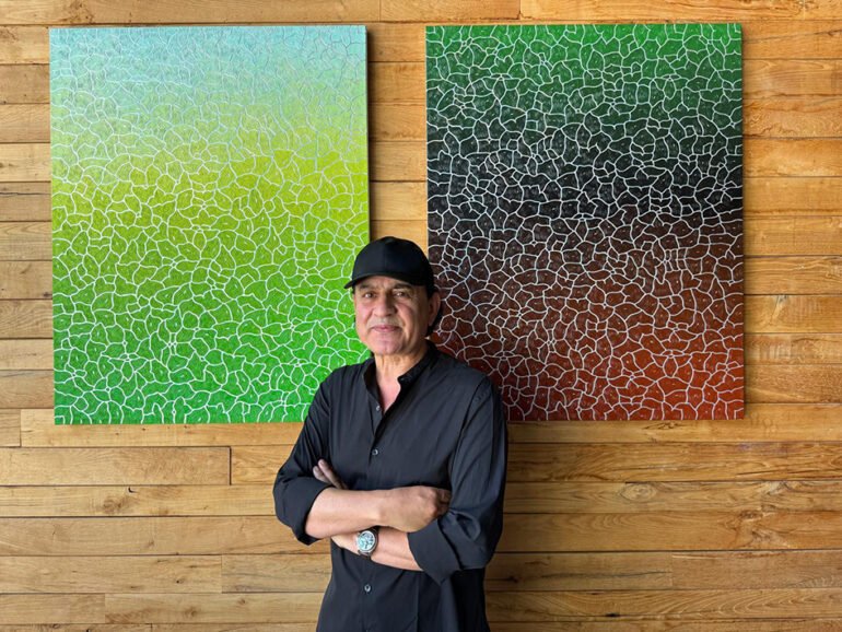 Sanat pratiğinde yıllarca renklerin anlamı ve duygusal etkisi üzerine yoğunlaşan Ekrem Yalçındağ, doğayla kurduğu estetik ilişkiyi son dönem işlerinde daha görünür kılmaya başlıyor. Sanatçı, üretim sürecine dair şu sözleriyle bu dönüşümü şöyle anlatıyor: “Doğadan yola çıkmama rağmen yıllarca renk konseptiyle uğraştım. Doğanın betimlemesi ve onunla kurulacak ilişkiden ziyade renklerin anlamı üzerine çok çalıştım. Bu iki seriyle doğa tanımlanabilir hâlde benim resimlerimde ortaya çıkmaya başladı. 1994’te ilk örneklerini verdiğim motifler 2018’de başka bir şeye dönüştü. Her ne kadar kaynağı doğa olsa da görsel olarak doğayla ilişkiyi ilk kez bu resimlerimde ortaya koydum. Doğanın varlığı, ağaç baskı ve doğanın ağaç üzerindeki kendi izini oluşturması sürecinde de bitki motifleri serigrafiyle yapıldı. Resimlerime bakıldığında doğayı hatırlatmasını istiyorum” dedi ve ekledi: “Çeşme, Urla gibi daha çok tatil ve gastronomiyle bilinen yerlerde de sergilerin düzenlenmesi sanatın kesintisiz olarak devam etmesine katkıda bulunuyor.”